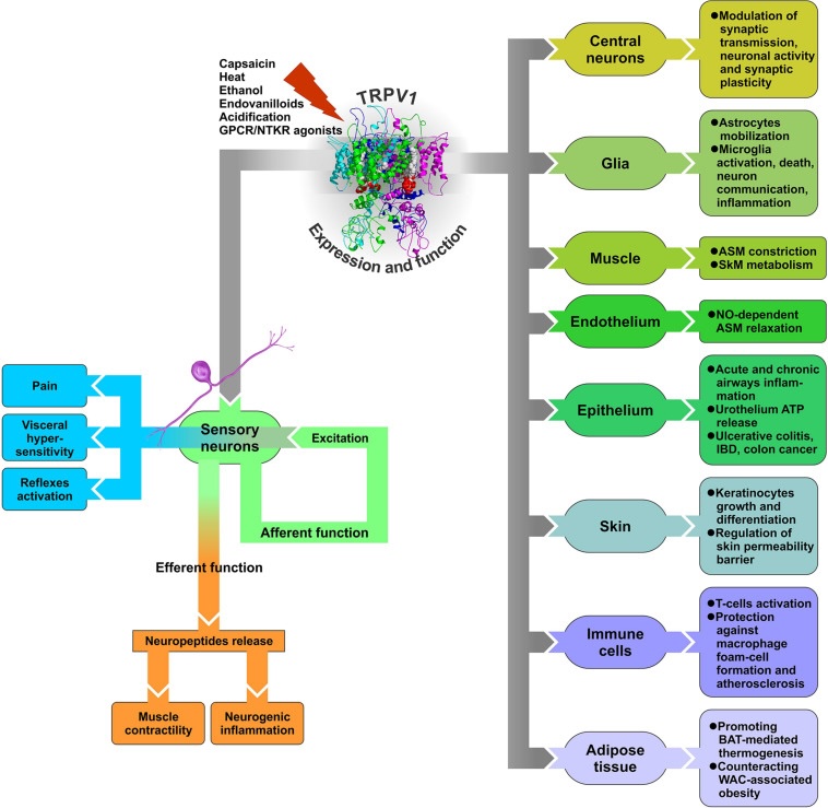 - In the brain, the TRPV1 channel is involved in glutamate transmission and neuroinflammation. In the immune system, it is found on T cells and is part of the inflammatory response.