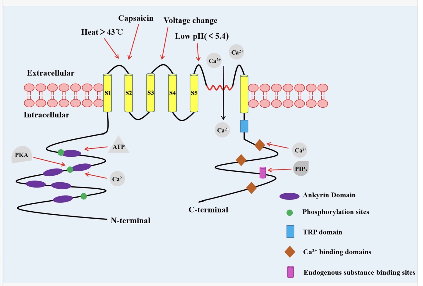 TRPV1 stands for transient receptor potential vanilloid 1. The TRPV1 receptor is an ion channel found on nerves in the central and peripheral nervous system. When activated, it sends a signal for pain or heat. The main function of this receptor is not to make you cry when eating spicy foods — instead, it is involved in body temperature regulation, basal neurotransmitter release in the brainstem, and more.