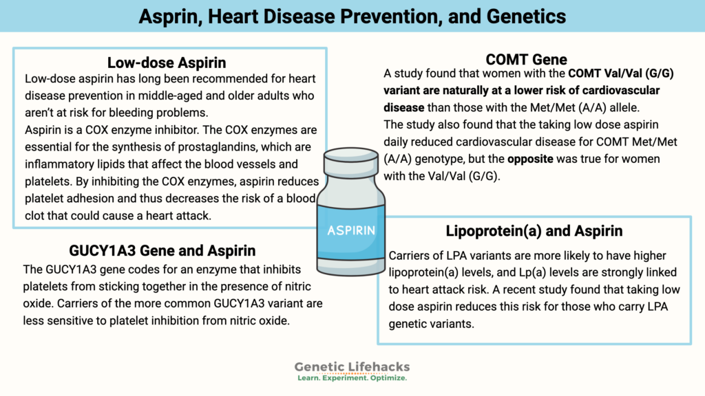 While large population studies show the benefits of aspirin, research shows that these heart-health benefits are dependent on your genes. Find out more and check your genetic raw data.